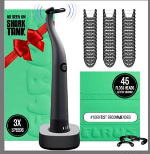 Flaus electric flosser makes taking care of your teeth and gums a snap of the reusable head.